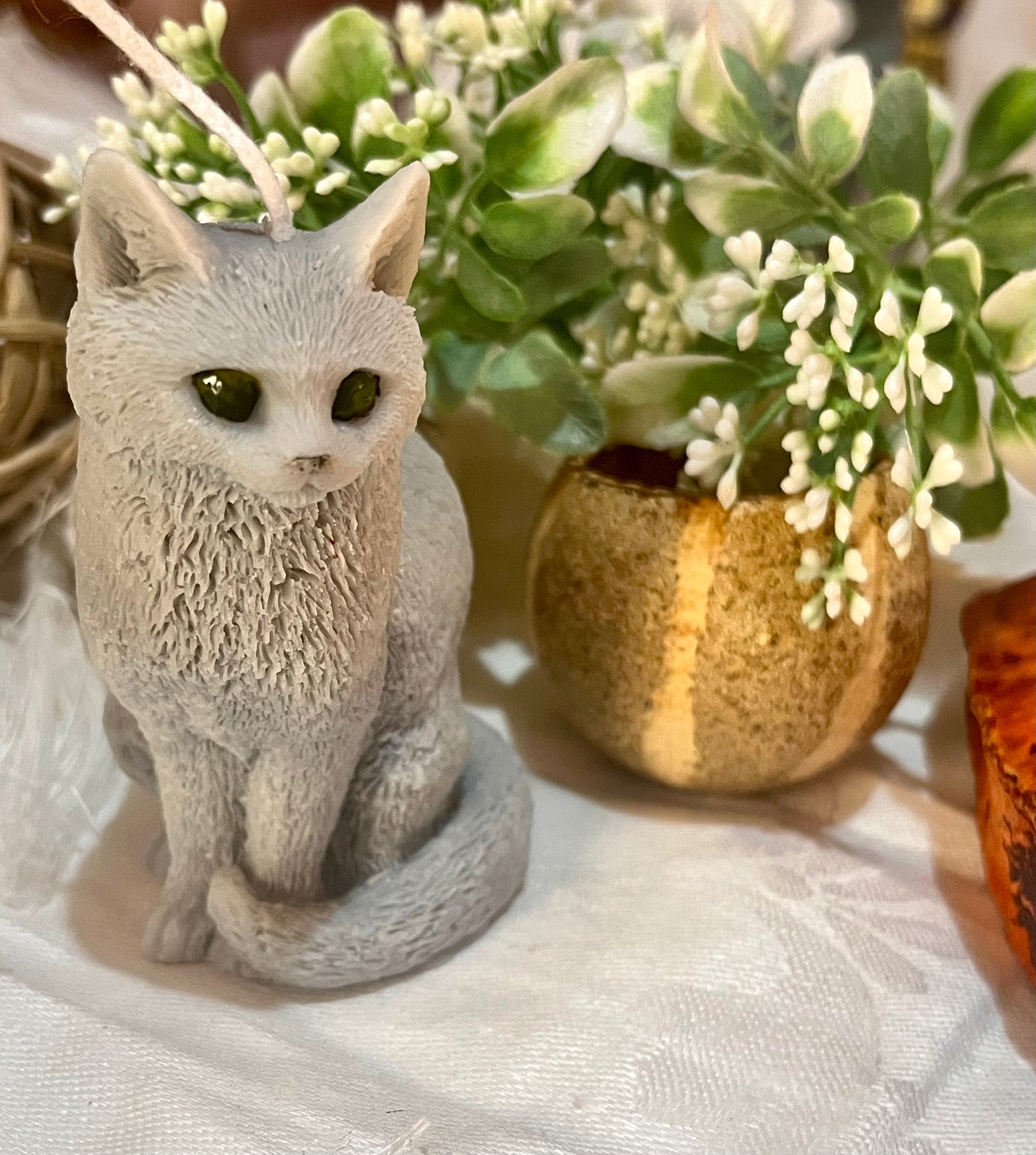 Scopri "Cenerino", la nostra incantevole candela a forma di gatto, un tocco di raffinatezza per ogni ambiente.