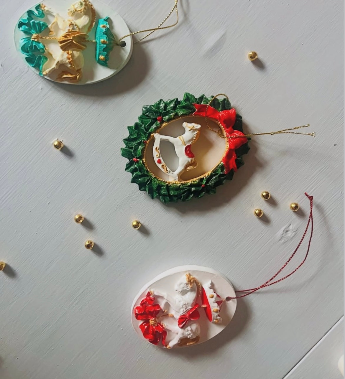 Pendente per albero di Natale in ecoresina dipinto a mano
